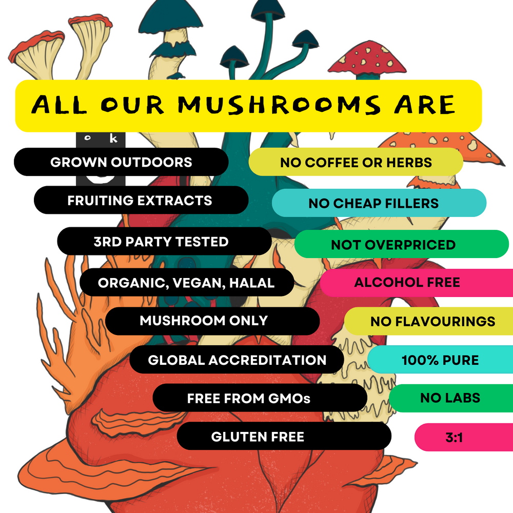 Chaga is uniquely high in melanin, providing antioxidant & DNA-protective effects, betulinic acid, derived from the birch trees it grows on, known for its anti-inflammatory and antiviral properties. It also contains inotodiol, a triterpenoid with immune-modulating effects. These compounds, uncommon in other fungi, make Chaga distinct for cellular protection, immune balance, and oxidative stress defense.